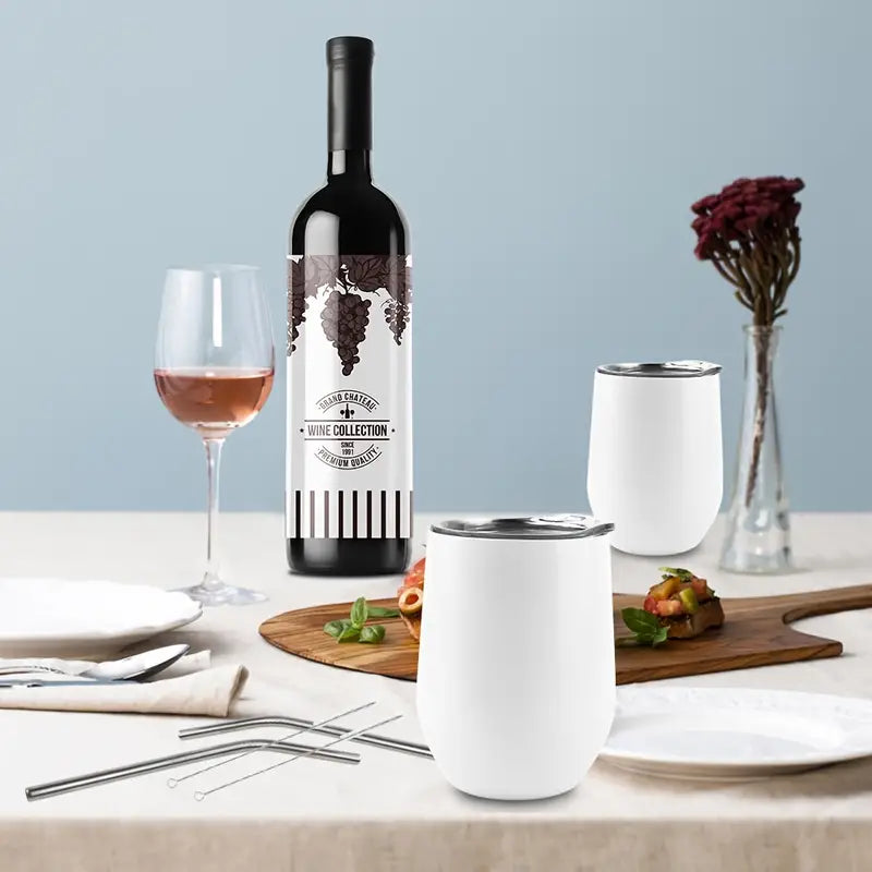 Elevate your drinking experience with our set of 2pcs Tumblers! Designed for those who appreciate both style and functionality, these 12oz stainless steel stemless glasses are perfect for a variety of beverages, from coffee, wine, cocktails, beer or even for bathroom tumbler.